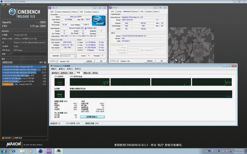 Nuovi bench di Ivy Bridge sono apparsi a questo indirizzo, questa volta riguardanti una soluzione dotata di 4 Core e 4 Thread (si tratta quindi di un futuro i5) operante alla frequenza di 2Ghz avente TDP di 65w.