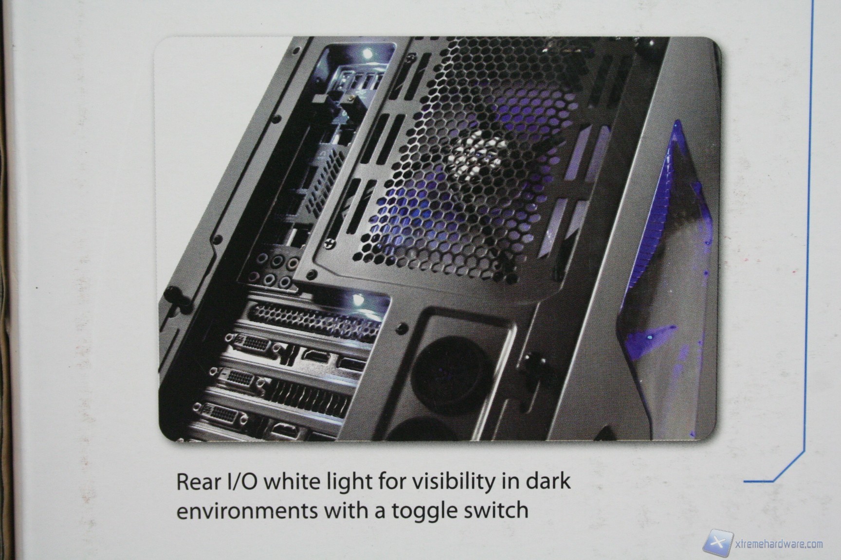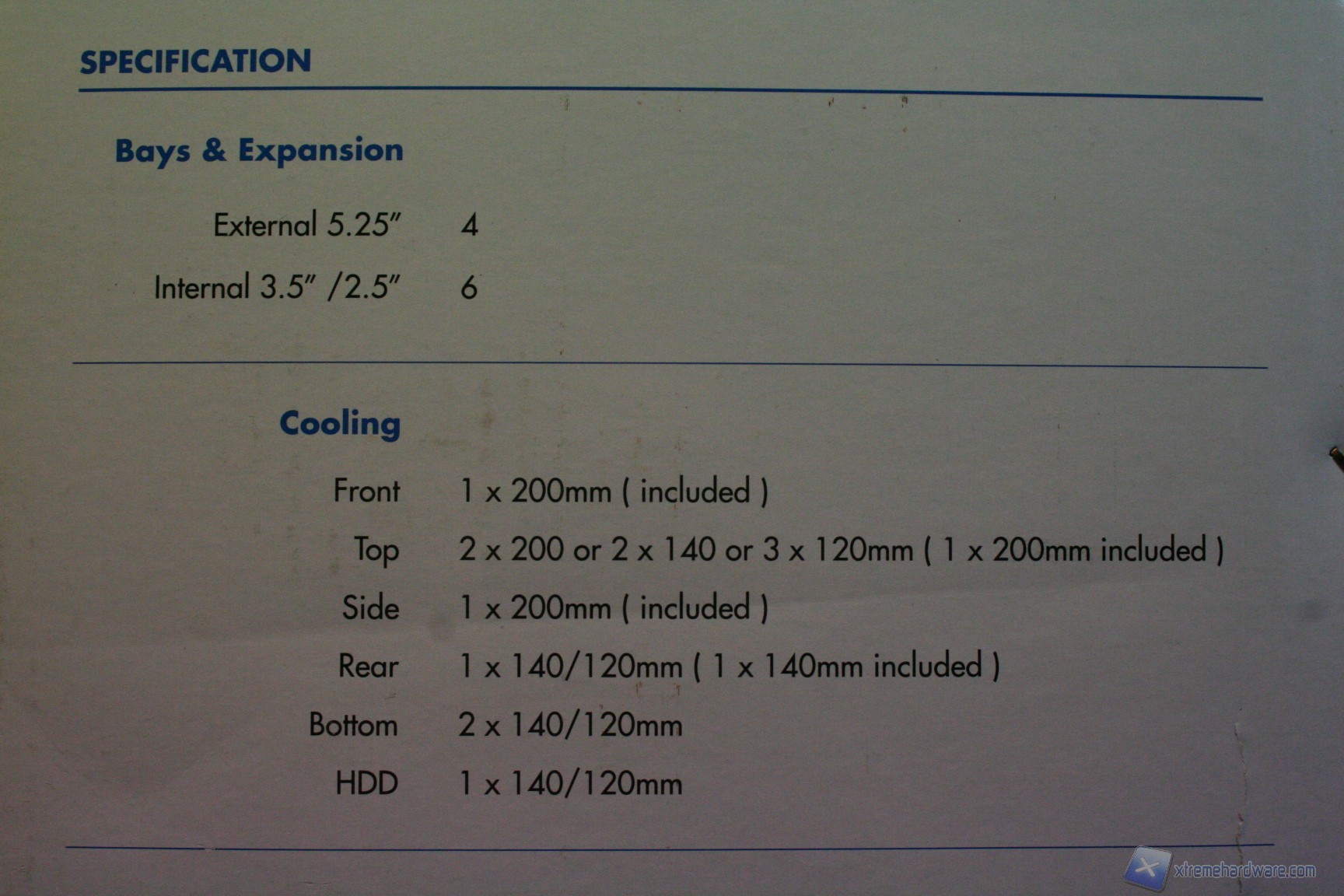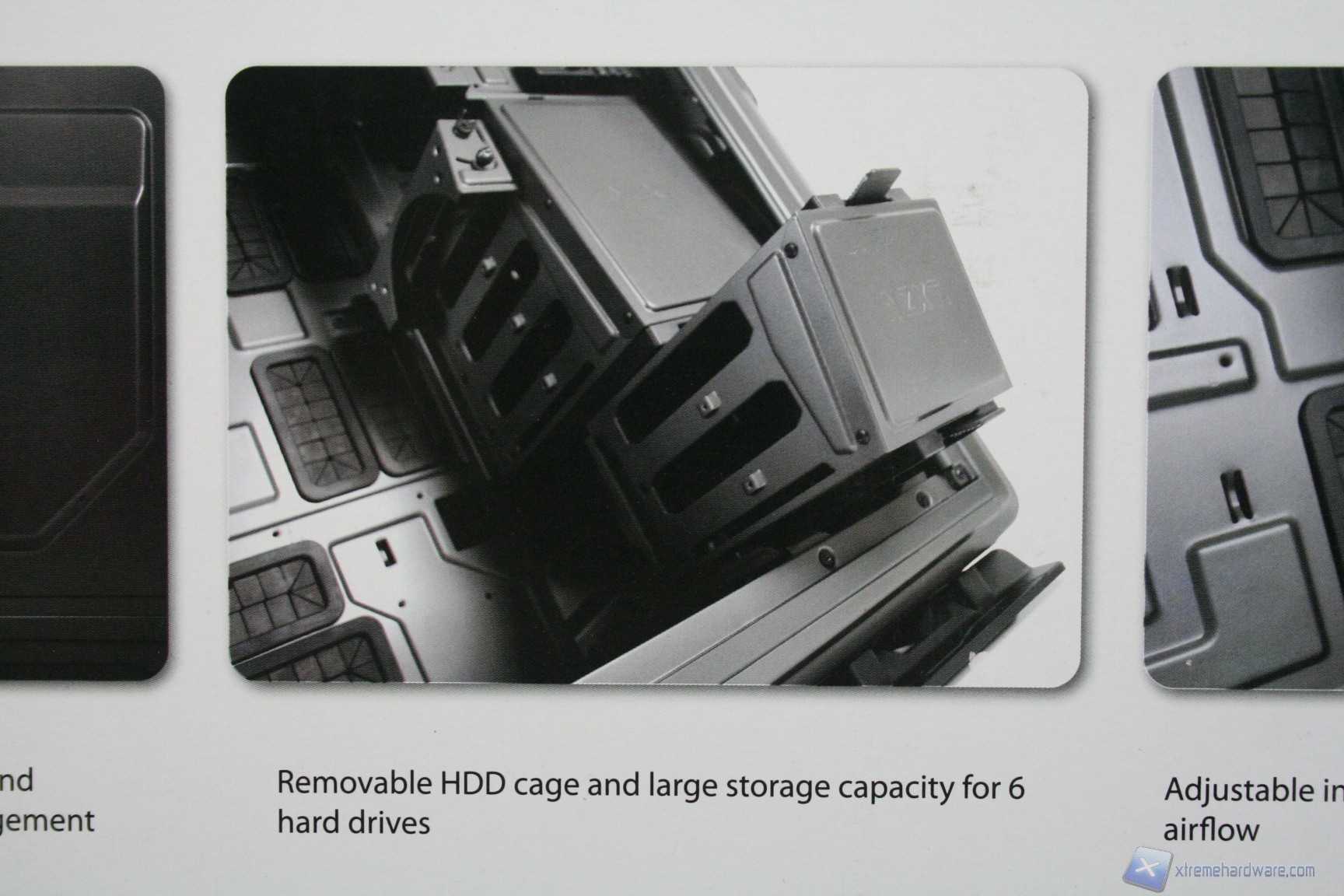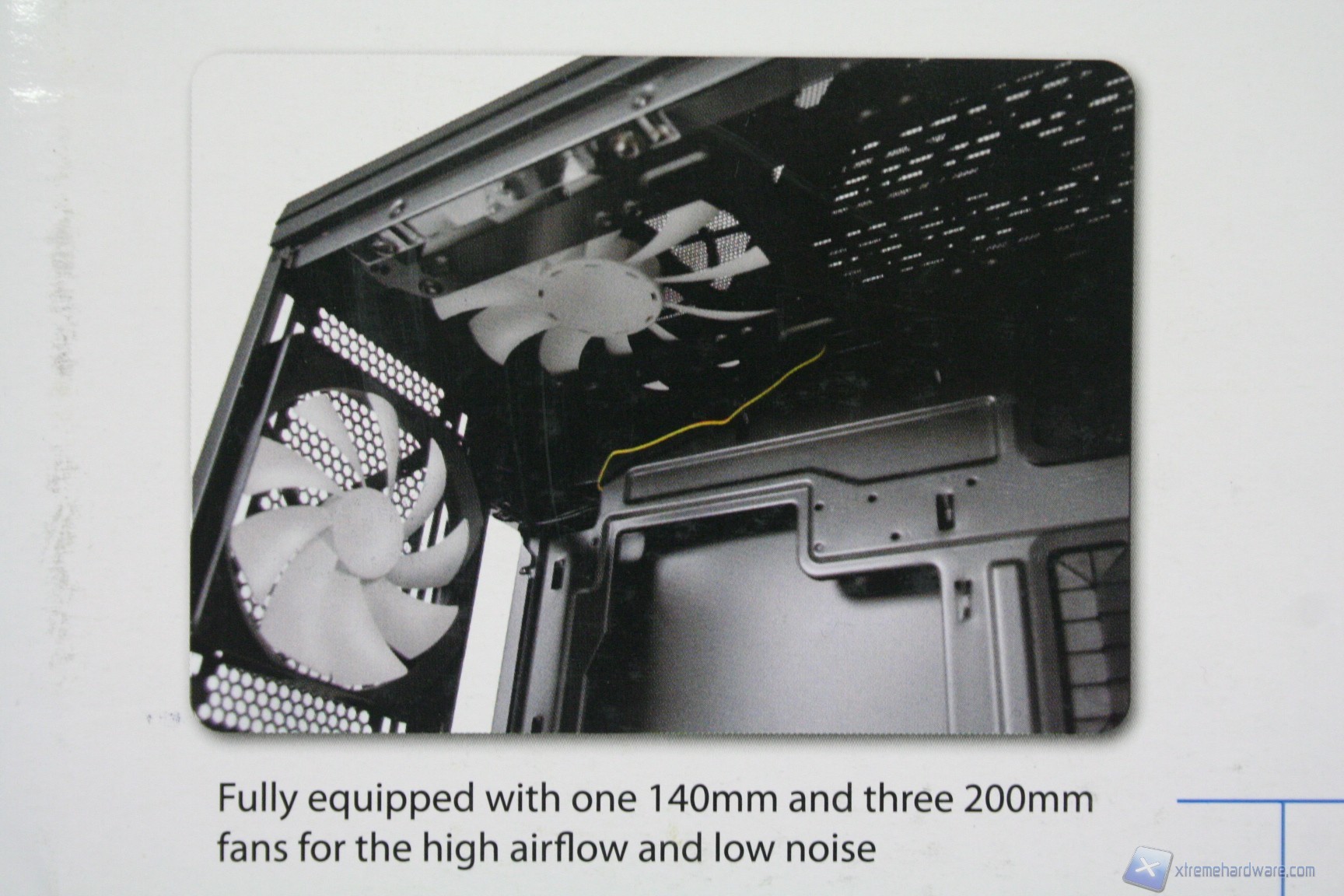 La confezione esterna non si discosta dalle precedenti di questo marchio, quindi è eccellente: grande quantitativo di informazioni, dettagli e specifiche tecniche. In sostanza, degna di un cabinet di fascia enthusiast. L’imballo è ottimo, anche se presenta del poliuretano espanso solo nella parte superiore mentre ai lati è comune polistirolo; ovviamente all’interno c’è la classica bustina di plastica antigraffio, attorno allo chassis.