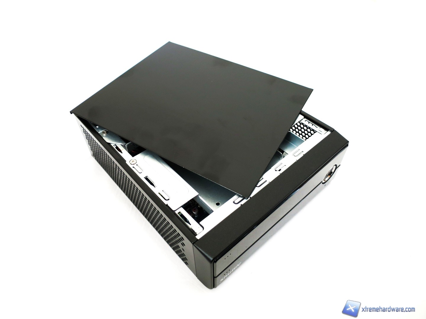 Procediamo ora a dare uno sguardo a cosa si cela all’interno di questo Mini-Pc di Shuttle. Svitiamo le due viti Tool-Less presenti nel retro dell’unità e sfiliamo velocemente la parte superiore.