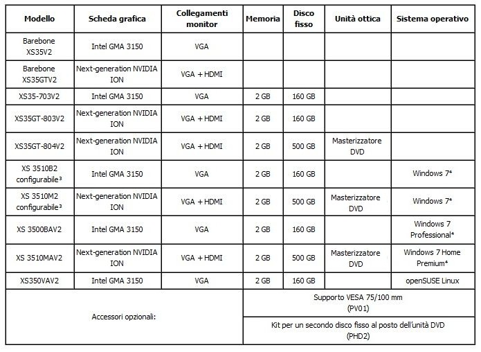 Il modello da noi recensito non è l'unico disponibile, infatti ci sono diverse varianti a seconda della nostra esigenza. Potete osservare tutta la gamma di questo barebone nella seguente tabella: